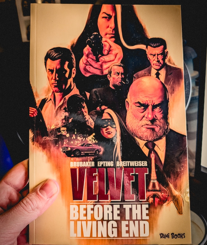 Der Nächste, bitte: Velvet. Ebenfalls von Brubaker, ebenfalls ohne Philips. Spionagethriller, der hauptsächlich in den 1970er Jahren spielt, aber bis in die 50er zurückgeht. Protagonistin: die erfahrene Velvet Templeton. Sie raucht, hat ein paar Alterungsfalten, eine weiße Haarsträhne. Ob getönt oder Natur ist nicht bekannt. Die Handlung ist komplex und greift viele whodunnit Elemente auf, diverse Wendungen inklusive. Zeichnungen und Farben sind denen von Philips in Criminal nicht unähnlich: Kontraststarke Farbpalette, überwiegend dunkle Töne, aber einen Tick detailierter.